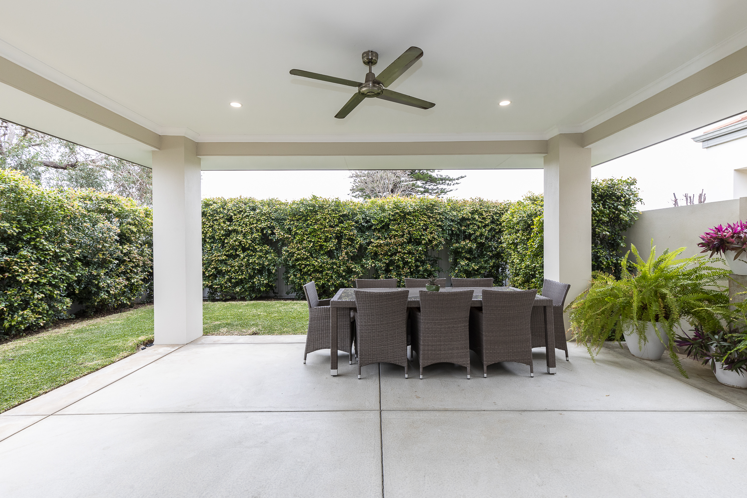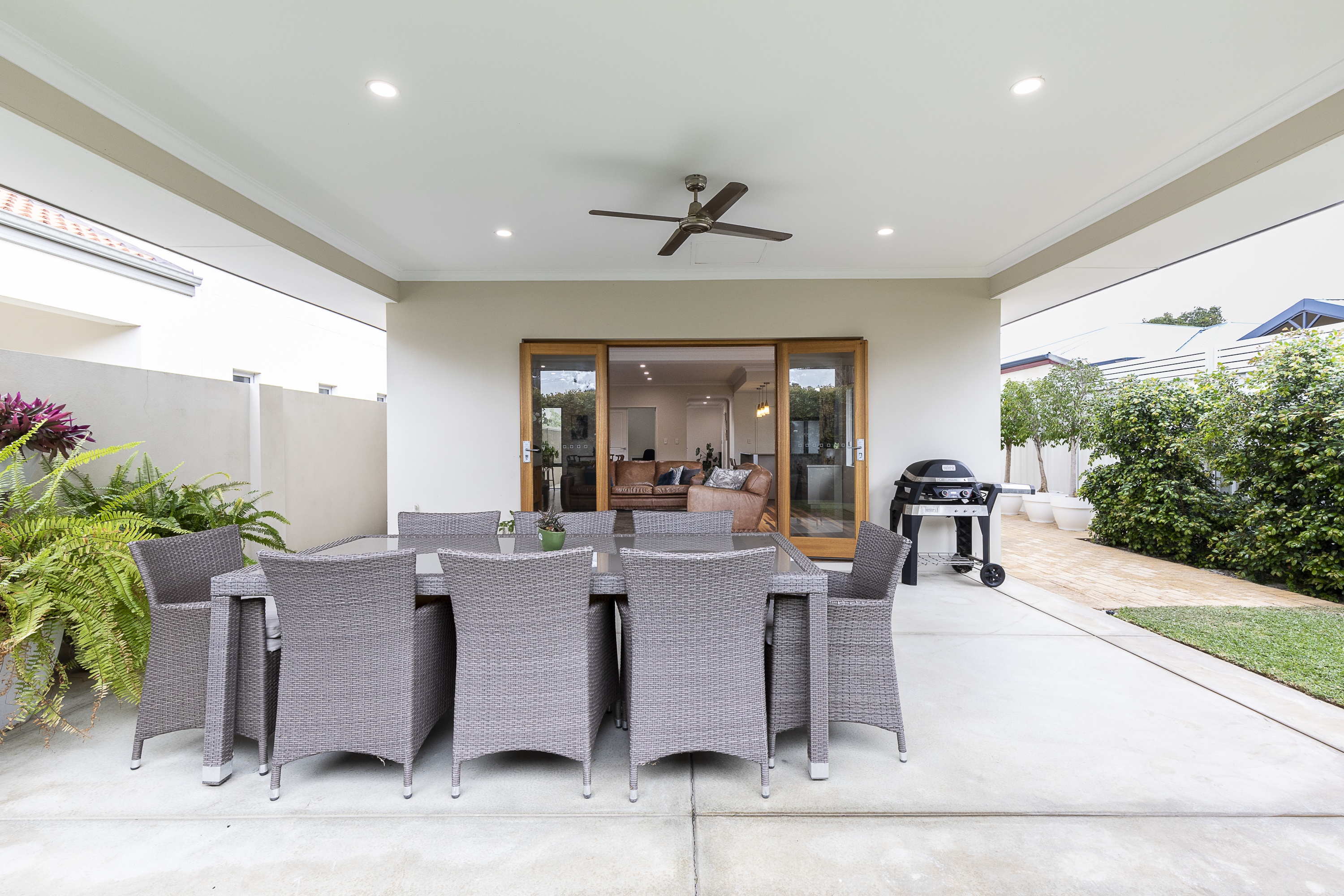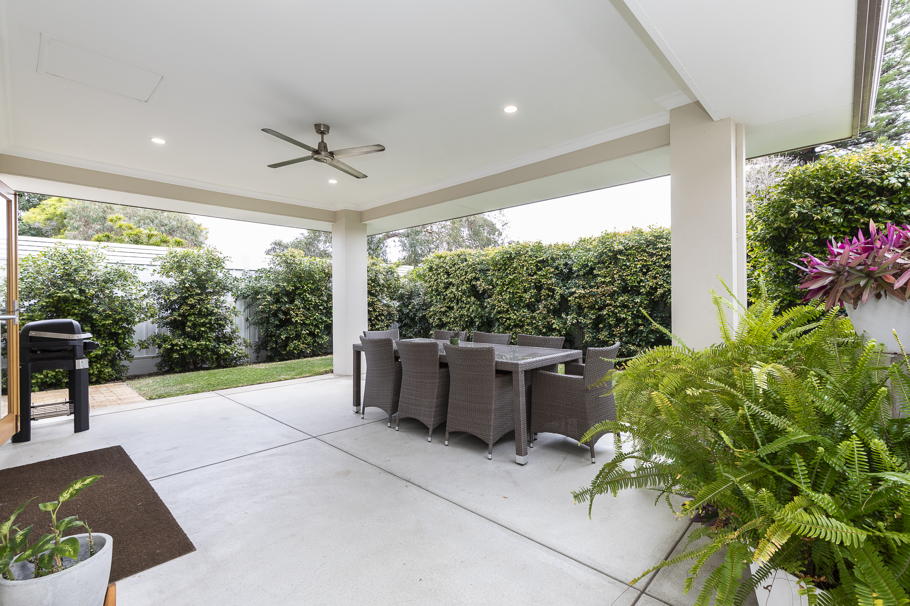 delightful covered alfresco overlooking the lush landscaped gardens. The open-plan design allows for seamless interaction with the dining and living areas, making it perfect for those who love to entertain. The bedrooms are generously sized and offer plenty of natural light. The master bedroom features an ensuite bathroom providing a private sanctuary for relaxation, with walk in robes fully equipped with shelving and storage.